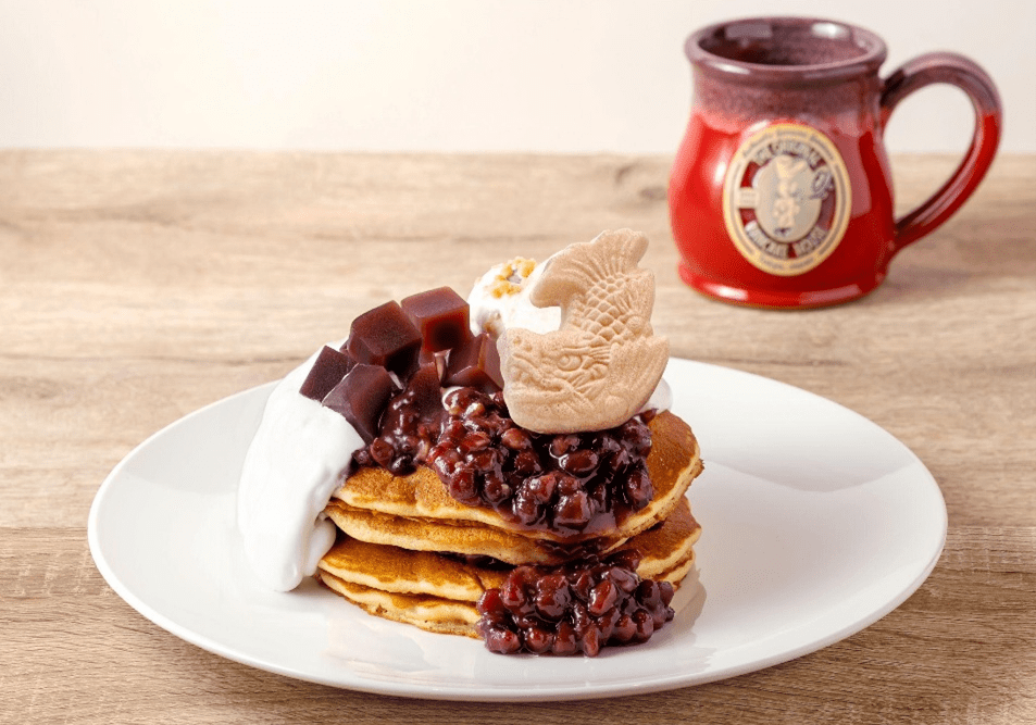 このメニューは、名古屋で長年親しまれている和菓子店「元祖 鯱もなか本店」とのコラボによって誕生。バターとあんこを挟んだパンケーキに、あずきアイスと羊羹を贅沢にトッピング。仕上げには、インパクト抜群の“鯱もなか”が乗り、見た目も味も名古屋らしさ満点!
