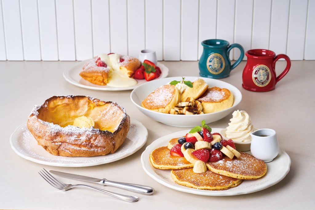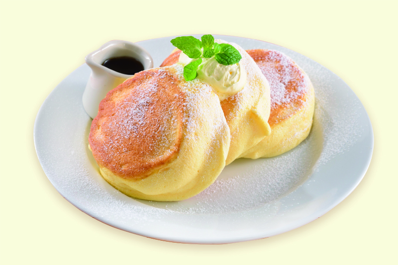 日本国内では、「ふわふわパンケーキ」も大人気。オーダーが入ってからメレンゲを立てて焼き上げるこのメニューは、その名のとおりふんわり軽やかな食感が特長。ミックスフルーツなどのトッピングと合わせて、見た目にも楽しく、食べ応えも抜群です。